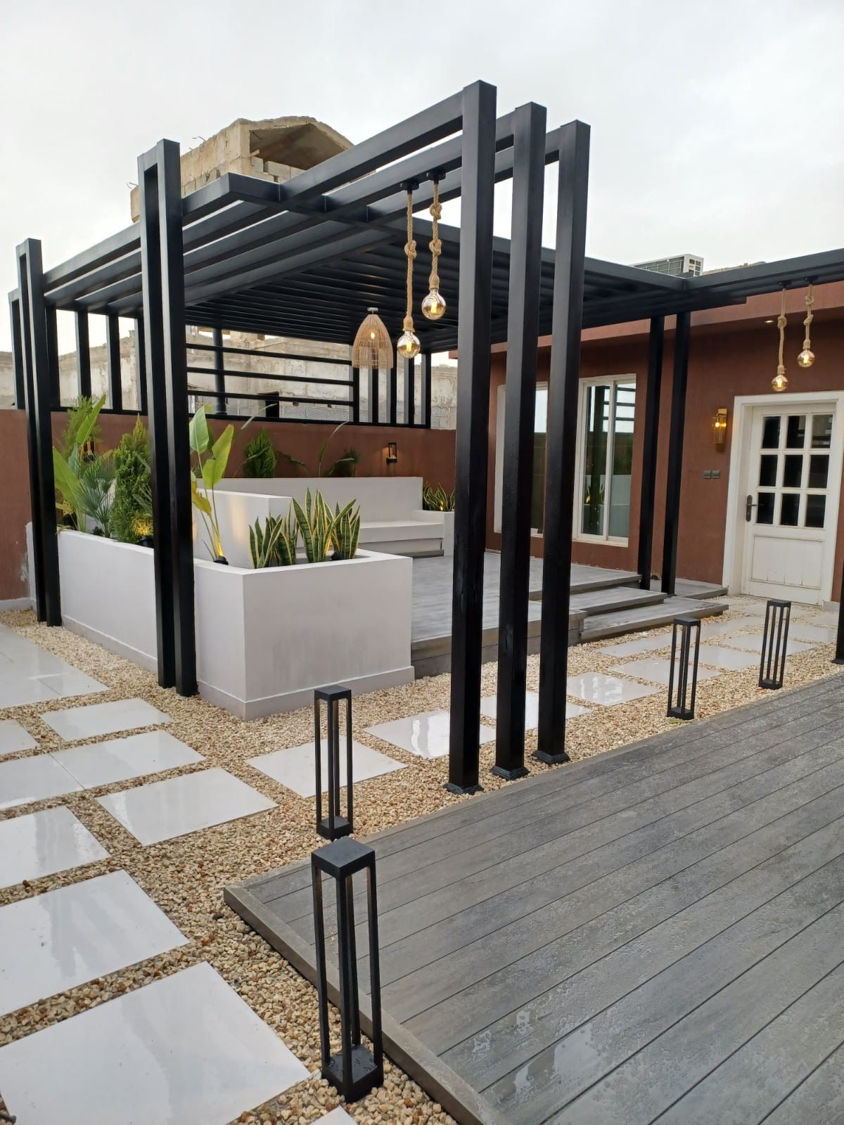 نصمم المساحات الخارجية لتكون متناغمة، أنيقة، وتمنح شعورًا بالراحة والطبيعة